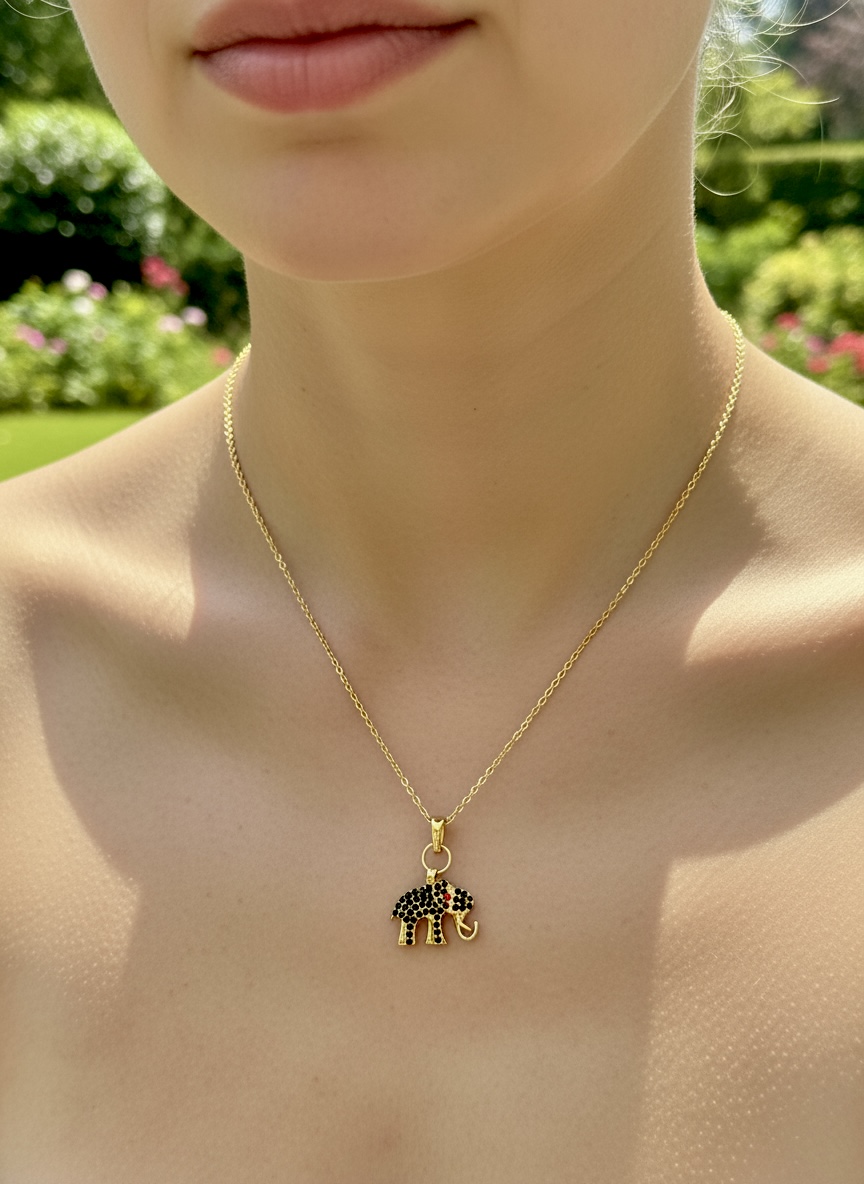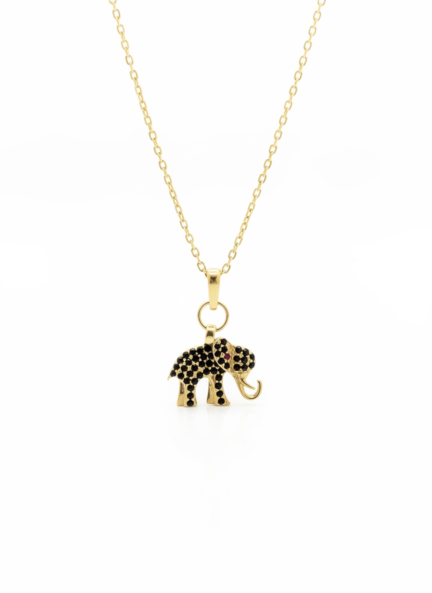 Zarif tasarımı ve anlamlı figürü ile öne çıkan bu kolye, 14 ayar altın kalın forse zincir üzerine işlenmiş fil figürü ile tasarlandı. Fil figürü; güç, şans ve bereketin sembolü olarak bilinir.