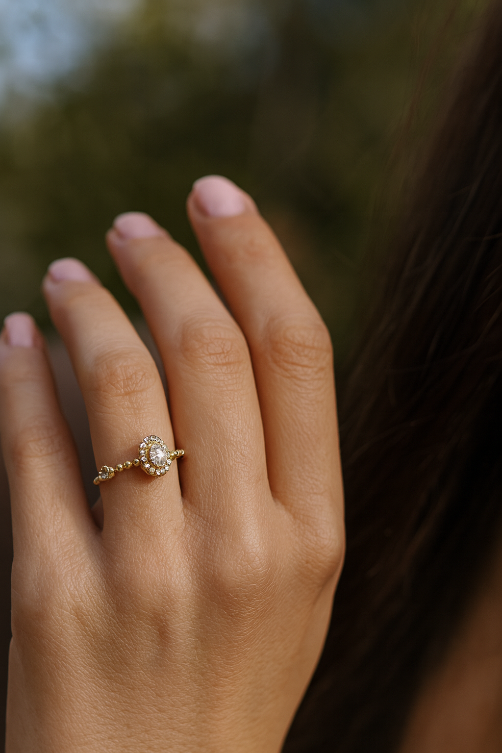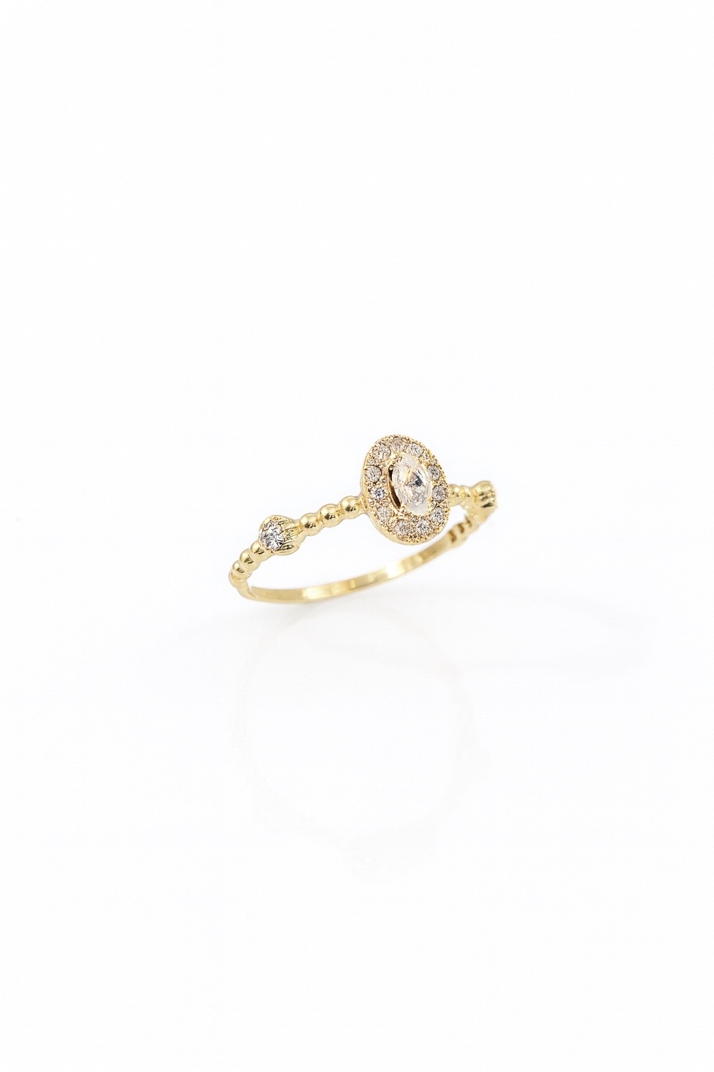 - Taş Özelliği: Oval merkez taş & pırlanta detaylı halo