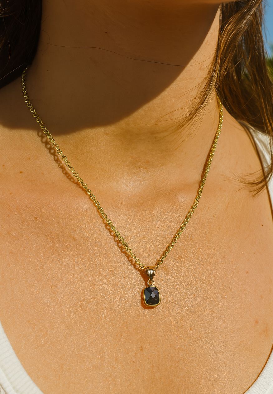 Zarafetin en sade hali… 14 ayar altın doç zincir üzerine yerleştirilmiş siyah facetli taş ile tasarlanan Gece Işıltısı kolye, asil ve modern bir duruş arayanlar için ideal. Günlük kullanıma da özel anlara da uyum sağlayacak bu özel parça, hem sade hem de etkileyici bir şıklık sunar.