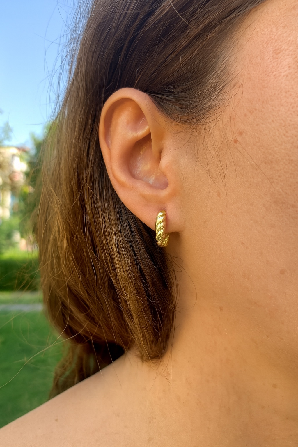 Twisora küpe, modern tasarımı ve zarif burgu (twist) detaylarıyla göz alıcı bir halka formuna sahiptir. Altının parlak ışıltısı ile birleşen kıvrımlı dokusu, klasik halka küpeleri daha sofistike bir seviyeye taşıyor. Hafif yapısıyla gün boyu rahat kullanım sağlar, her stile uyumlu zamansız bir parçadır.